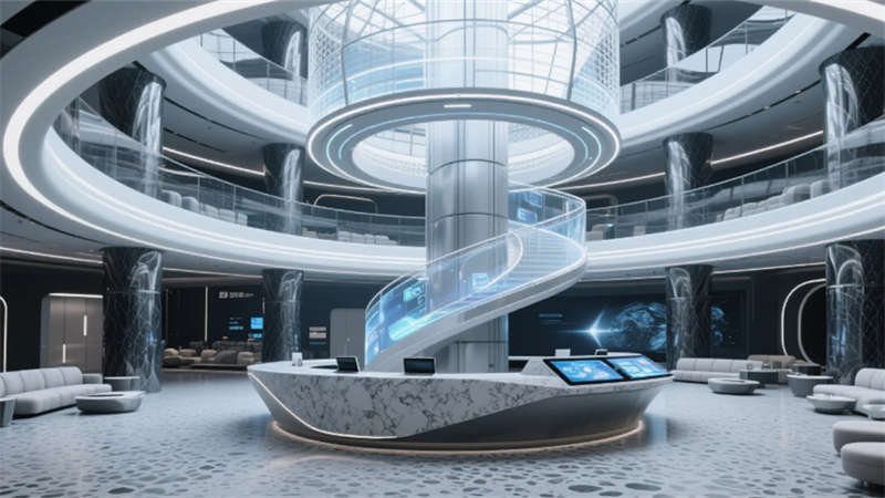 厘米級定位系統(tǒng)織就空間的數(shù)字神經(jīng)網(wǎng)絡,實時感知行為軌跡的熱力圖譜。增強現(xiàn)實技術將虛擬協(xié)作層注入物理環(huán)境,會議紀要懸浮于白墻上空,項目進度可視化流淌在地面光帶中。智能環(huán)境控制系統(tǒng)如同無形的指揮家,根據(jù)溝通場景自動調(diào)節(jié)光域范圍與氣流速度,讓空間氛圍隨對話內(nèi)容自然脈動。當數(shù)字邏輯與建筑肌理深度融合,辦公室便升維為承載集體智慧的生命體。
