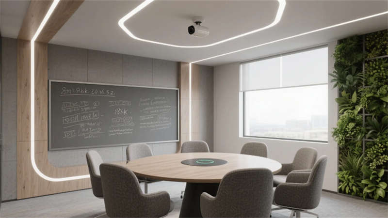 設(shè)計(jì)更以人文觸覺消解科技冰冷感:企業(yè)標(biāo)志性的霧青藍(lán)貫穿于軟裝細(xì)節(jié),4000K色溫照明呵護(hù)視覺舒適度,模塊化綠植系統(tǒng)構(gòu)建立體呼吸網(wǎng)絡(luò)。從智能調(diào)光玻璃到聲學(xué)毛氈墻面,每處創(chuàng)新皆隱于無形,讓科技真正服務(wù)于人的感知體驗(yàn)。這座合肥辦公空間,正以靜默的設(shè)計(jì)語言詮釋著未來工作場域的更多可能——當(dāng)自然、科技與人文在此共振,辦公不再是程式化的容器,而成為激發(fā)創(chuàng)造力的有機(jī)生命體。