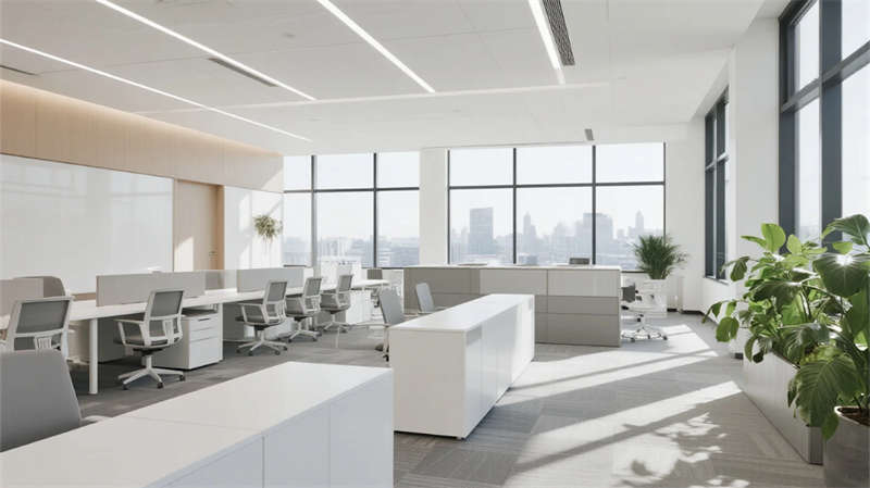 這座辦公空間設(shè)計以現(xiàn)代簡約風(fēng)格為核心,通過統(tǒng)一的美學(xué)語言打造出和諧而高效的空間體驗(yàn)。整體采用中性色調(diào)和簡潔線條,強(qiáng)調(diào)自然光的最大化利用,營造出明亮通透的氛圍。功能區(qū)布局注重流暢性,從接待區(qū)的開放迎賓到開放式辦公區(qū)的協(xié)作精神,再到會議室的專業(yè)嚴(yán)謹(jǐn),每個空間都融入了綠植點(diǎn)綴,增添生機(jī)感。休閑休息區(qū)提供舒適放松的角落,獨(dú)立辦公室則平衡了隱私與專注,茶水間和衛(wèi)生間延續(xù)了簡約實(shí)用的設(shè)計原則,多功能室支持靈活多變的活動需求。設(shè)計亮點(diǎn)在于對生態(tài)元素的融合,如大量綠植和自然光,提升了環(huán)境品質(zhì),同時現(xiàn)代家具和材質(zhì)選擇強(qiáng)化了簡約美學(xué),確保功能與美感的統(tǒng)一。該項目體現(xiàn)了對辦公環(huán)境的革新思考,致力于創(chuàng)造一個既高效又宜居的空間,成為城市辦公新標(biāo)桿。