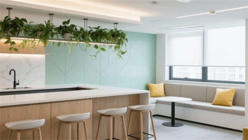設(shè)計強調(diào)人文關(guān)懷,休閑區(qū)暖調(diào)燈光與柔軟卡座形成情緒緩沖帶,茶水間吧臺成為非正式社交樞紐。材質(zhì)選擇凸顯可持續(xù)理念,微水泥、再生木材與綠植系統(tǒng)貫穿始終,呼應(yīng)簡約背后的生態(tài)意識。整體空間在合肥這座創(chuàng)新之城,詮釋了高效辦公與人文溫度共生的當(dāng)代范式。