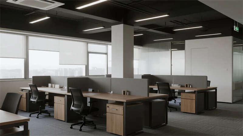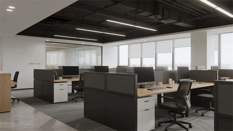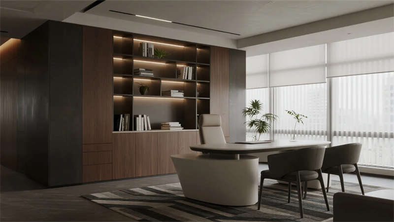 開放辦公區(qū)依托巨幅落地窗引入自然韻律,升降工位與模塊化家具賦予空間彈性;獨立辦公室通過垂直百葉調(diào)節(jié)光影私密性,暗藏式書柜燈光烘托沉穩(wěn)氣質(zhì)。核心協(xié)作區(qū)打破傳統(tǒng)封閉模式,弧形沙發(fā)與可書寫玻璃墻激發(fā)即興創(chuàng)意,而茶水間綠植墻與城市景觀吧臺,則在高效節(jié)奏中注入呼吸感。