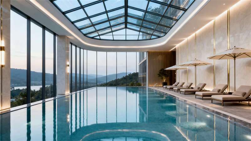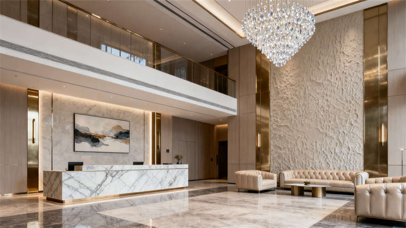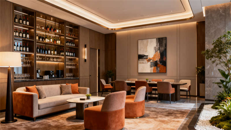 室內(nèi)空間裝修圍繞不同功能場(chǎng)景精準(zhǔn)發(fā)力。大堂以開闊通透為基調(diào),地面選用質(zhì)感石材鋪設(shè),墻面搭配柔和的肌理材質(zhì)與藝術(shù)裝飾,接待區(qū)設(shè)計(jì)簡(jiǎn)約大氣,搭配舒適的休憩座椅,營(yíng)造出溫馨且有格調(diào)的迎賓空間;行政套房注重私密性與舒適度,裝修上采用柔和的色彩搭配,床頭背景墻融入精致紋樣,家具選用簡(jiǎn)約實(shí)用款式,衛(wèi)生間做干濕分離設(shè)計(jì),搭配品質(zhì)衛(wèi)浴設(shè)施,讓入住體驗(yàn)更顯愜意;全日制餐廳裝修兼顧實(shí)用性與氛圍營(yíng)造,開放式布局搭配半私密卡座,餐桌椅選用耐用且美觀的款式,墻面點(diǎn)綴綠植與藝術(shù)掛畫,燈光采用暖色調(diào),打造出適合用餐的輕松環(huán)境;多功能宴會(huì)廳以靈活實(shí)用為核心,裝修上采用簡(jiǎn)潔的吊頂設(shè)計(jì)與可調(diào)節(jié)燈光系統(tǒng),墻面選用大氣的裝飾材質(zhì),地面鋪設(shè)耐磨易清潔的材料,滿足不同活動(dòng)需求;行政酒廊裝修凸顯雅致感,柔和的燈光、舒適的沙發(fā)搭配質(zhì)感裝飾,為賓客提供放松交流的空間;健身中心裝修注重功能性,通透的玻璃隔斷、專業(yè)的運(yùn)動(dòng)地板搭配齊全的健身設(shè)備,營(yíng)造活力氛圍;室內(nèi)泳池裝修以靜謐舒適為主,無(wú)邊際設(shè)計(jì)搭配自然光線引入,池邊布置休閑躺椅,讓賓客盡享放松時(shí)刻。