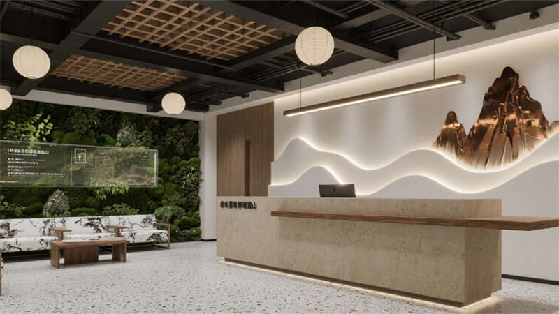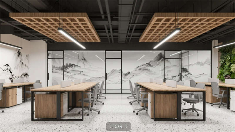 空間脈絡(luò)延續(xù)山水哲學(xué)——開(kāi)放式辦公區(qū)的水墨玻璃隔斷營(yíng)造朦朧畫(huà)境,創(chuàng)想實(shí)驗(yàn)室可書(shū)寫(xiě)墻面激發(fā)思維奔流。協(xié)作沙龍區(qū)的階梯布局與動(dòng)態(tài)山水投影,催化靈感迸發(fā)的化學(xué)反應(yīng)。靜思艙藏身綠植墻中,為深度思考保留秘境。