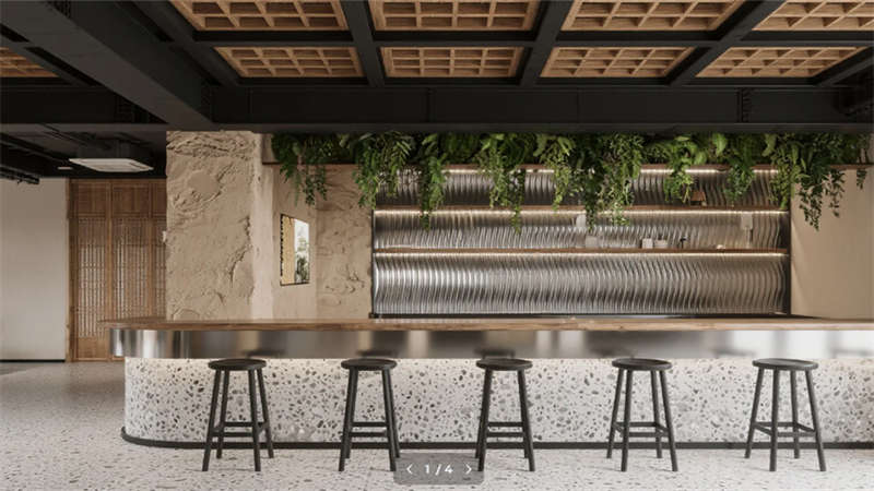 新中式工業(yè)風(fēng)骨架支撐起詩(shī)意場(chǎng)景,智能光療系統(tǒng)與磁吸供電科技隱于無(wú)形。云會(huì)議艙的煙雨江南數(shù)字畫(huà)卷,與夯土吧臺(tái)的粗糲質(zhì)感形成時(shí)空回響。這里不僅是效率容器,更是滋養(yǎng)人文精神的山川微縮劇場(chǎng),在機(jī)械理性中重建天人合一的當(dāng)代范本。
