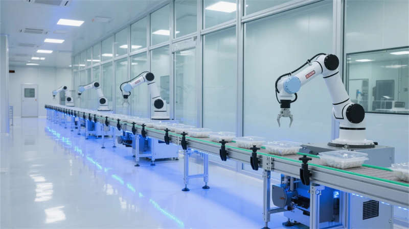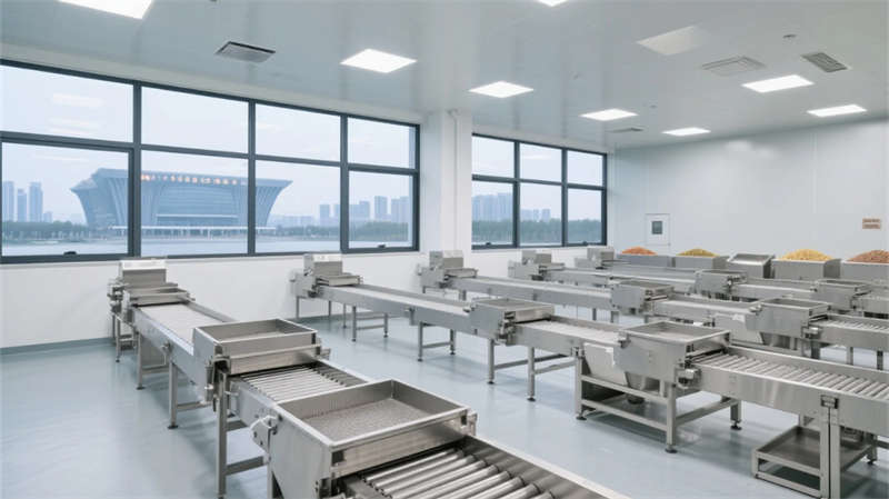 該設(shè)計(jì)將食品制造轉(zhuǎn)化為空間美學(xué)實(shí)踐,通過玻璃幕墻構(gòu)建內(nèi)外視覺對話,使合肥的城市脈動(dòng)成為生產(chǎn)背景。核心車間采用全透明隔斷,不銹鋼設(shè)備與藍(lán)色光暈在環(huán)氧地坪上交織,形成精密而潔凈的科技圖景。