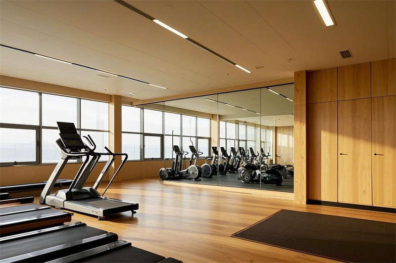 健身房內(nèi),落地鏡墻面與木質(zhì)地板打造出寬敞明亮的運動空間,有氧器械區(qū)、力量訓練區(qū)與瑜伽區(qū)一應俱全,讓您在旅途中也能保持健康活力。