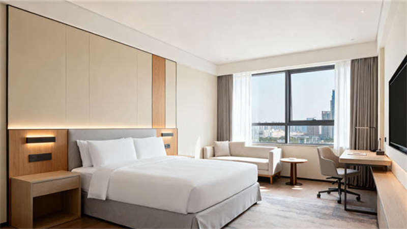 外觀設計摒棄繁雜裝飾,采用簡潔的線條與溫潤的材質搭配,既展現(xiàn)出酒店的大氣質感,又融入了對周邊環(huán)境的適配性,避免過于突兀的視覺沖擊。室內部分,大堂以開闊的空間布局為基礎,通過柔和的燈光與自然材質的運用,營造出溫馨且具格調的接待氛圍,讓賓客步入時便能感受到舒適感;客房聚焦居住的實用性與舒適度,軟裝搭配注重色彩的協(xié)調,家具選型兼顧美觀與功能性,為賓客打造休憩的理想空間;餐廳設計則圍繞用餐體驗展開,燈光與餐桌布局相互配合,營造出適宜聚餐或獨處的用餐氛圍;會議室注重空間的功能性,合理的桌椅擺放與完善的配套設計,滿足不同會議場景的需求;健身房以簡潔明快的風格為主,確保運動空間的通透感,讓賓客在運動時保持愉悅心情;游泳池周邊則通過軟裝與燈光的搭配,營造出放松愜意的氛圍,為賓客提供休閑放松的好去處。整體設計始終以提升賓客體驗為核心,讓每個空間既具自身特色,又能融入整體風格之中。