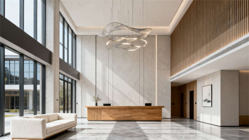 進(jìn)入室內(nèi),大堂區(qū)域?qū)挸髁?,淺灰與米白的主色調(diào)營造出干凈清爽的氛圍,搭配原木色元素增添溫馨感,合理的空間布局讓動線清晰流暢,接待區(qū)與休息區(qū)劃分明確,既滿足功能需求,又提升了整體的格調(diào)。?