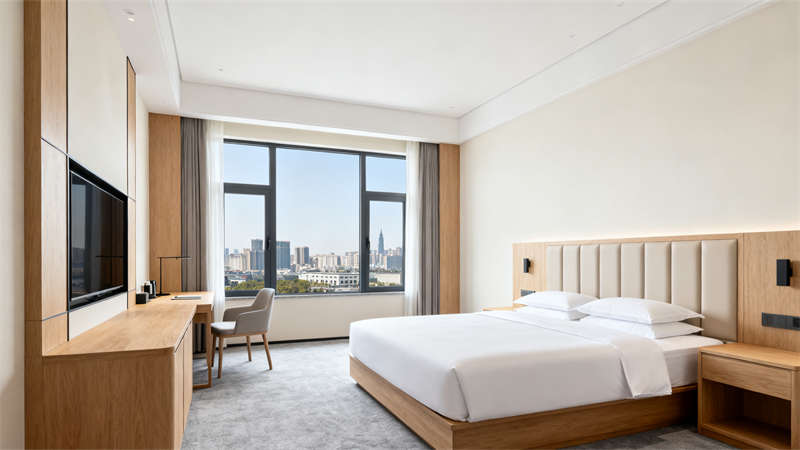 客房設(shè)計(jì)注重舒適與便捷,整體風(fēng)格延續(xù)簡約風(fēng),家具選擇線條簡潔的款式,軟裝搭配以柔和的色彩為主,營造出寧靜放松的休憩環(huán)境,同時兼顧收納功能,讓客房空間整潔有序。?