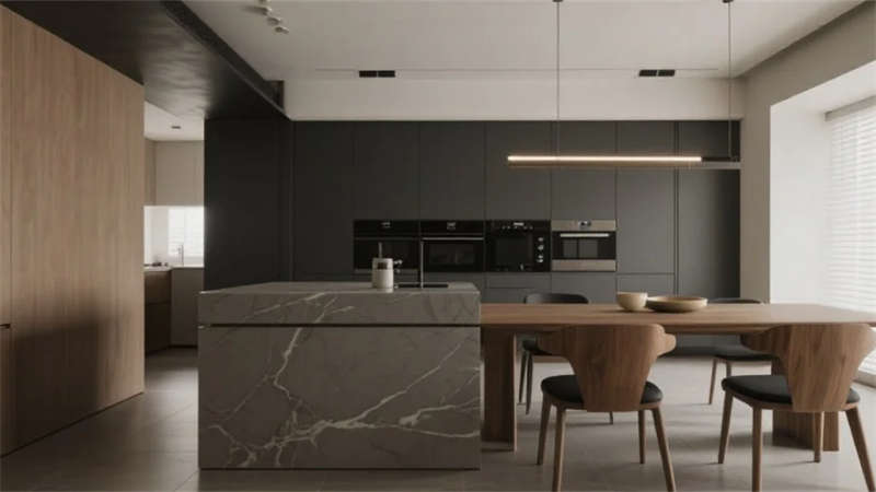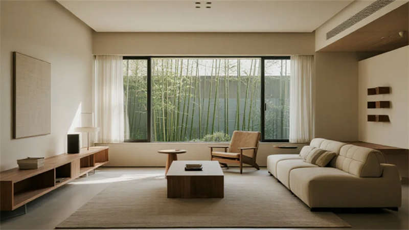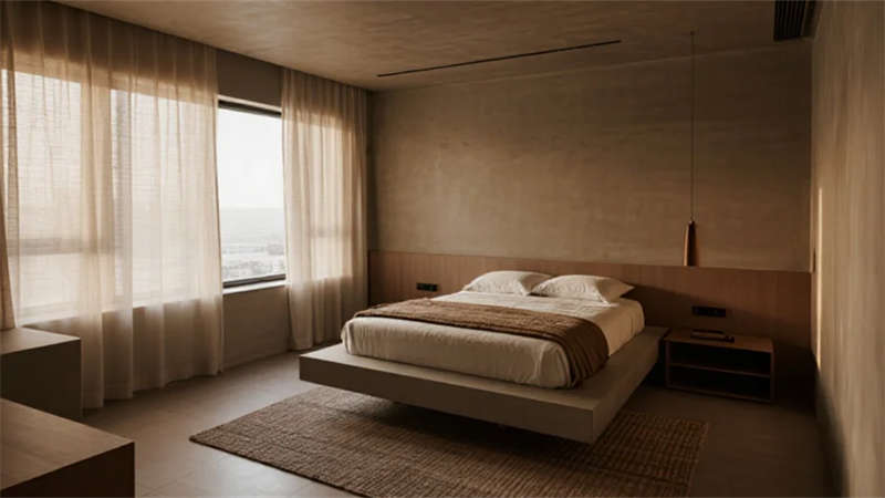 該設(shè)計以現(xiàn)代簡約語言重構(gòu)居住本質(zhì),將自然光影作為空間敘事的主角。建筑外觀采用純凈的幾何體塊組合,原木格柵與純白墻面對話,形成克制而溫暖的初印象。室內(nèi)摒棄冗余裝飾,通過微水泥的質(zhì)樸肌理、實木的溫潤觸感以及亞麻織物的呼吸感,構(gòu)建出具有生命力的簡約美學(xué)。