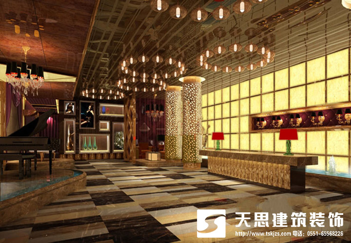 項(xiàng)目名稱(chēng):合肥潮流KTV裝修設(shè)計(jì) 設(shè)計(jì)面積:800平方 項(xiàng)目地址:安徽省合肥市 合肥潮流KTV裝修設(shè)計(jì),金銅色的燈光耀眼而又溫馨,大理石般的地板,更是襯托出了大廳的