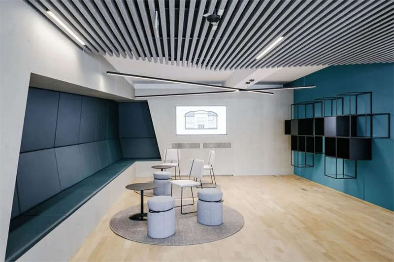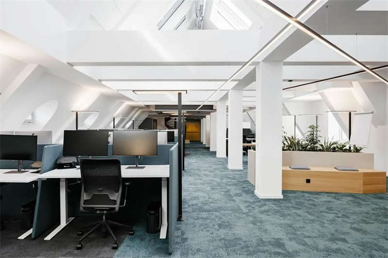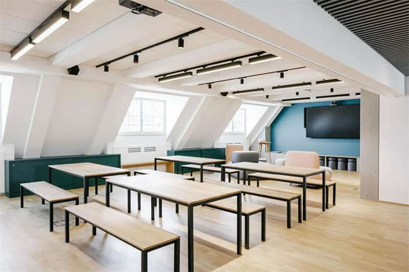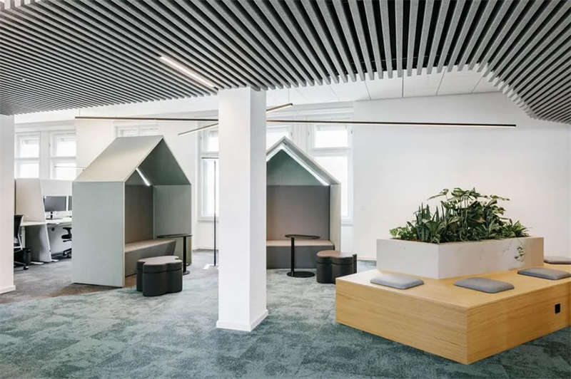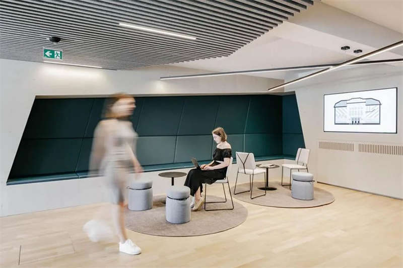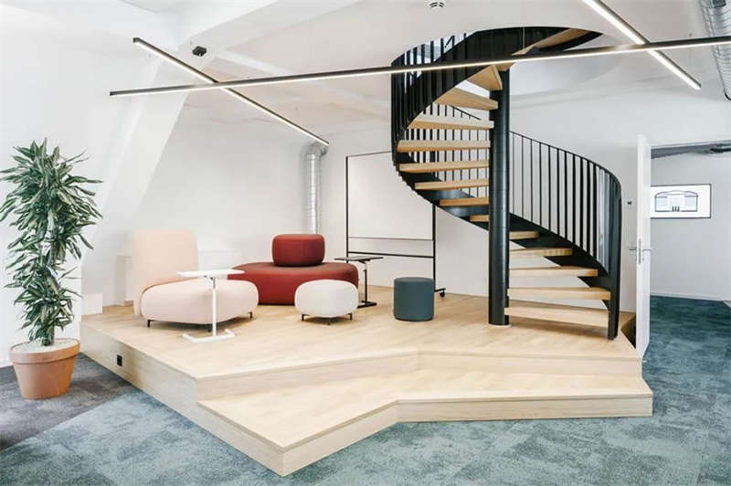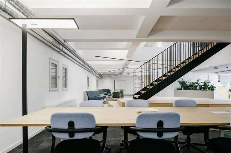 在與客戶的密切合作以及對方員工的積極參與下,設(shè)計師成功創(chuàng)建了一處精彩的工作空間,在這里,人們可以集中精力專注工作,也可以隨時隨地進行各種不同的協(xié)作、交流、互動和頭腦風(fēng)暴。各種不同主題的廳廊空間、靈活多元的協(xié)作空間、以及巨大的屋頂露臺,讓這處空間變得獨一無二??臻g隨著人們的移動不斷變化著景觀視線和功能場景,豐富而精彩的設(shè)計讓這里步移景異,充滿驚喜和樂趣。