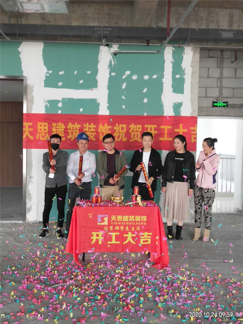 儀式現(xiàn)場,鮮艷的幕布、鮮花、香檳、禮炮、禮錘,隆重而周密的布置,無不彰顯天思真誠為客戶服務(wù)的態(tài)度。“真誠服務(wù)客戶,永遠(yuǎn)比客戶多走一步”一直以來都是天思的服務(wù)理念。感謝客戶對天思建筑裝飾的信任。感謝客戶對天思建筑裝飾的信任。我們將竭誠為您服務(wù)。我們一定不負(fù)眾望,用高效率、高質(zhì)量、高品質(zhì)的三高服務(wù)定律,為項(xiàng)目保駕護(hù)航。