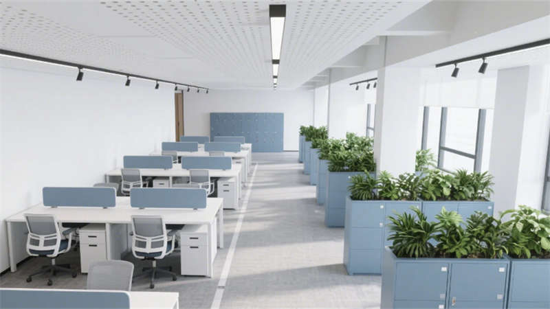 人性化細(xì)節(jié)貫穿各區(qū)域:電梯廳導(dǎo)向系統(tǒng)與隱藏式消防設(shè)施實(shí)現(xiàn)功能隱形化,員工休息區(qū)混搭工業(yè)風(fēng)吧臺與暖光沙發(fā),搭配咖啡機(jī)與綠植墻釋放壓力。設(shè)計(jì)同步植入環(huán)保理念,采用低能耗照明系統(tǒng)、空氣監(jiān)測模塊及可回收建材,構(gòu)建健康可持續(xù)的辦公生態(tài),傳遞企業(yè)面向未來的品牌價(jià)值觀。