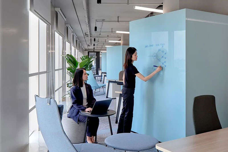 設計過程中也不乏挑戰(zhàn):如何在空間設計中顯示出Arm China 特有DNA以及未來辦公的前瞻性?一工團隊為此做了充分調(diào)研,成為智能計算生態(tài)的領航者,這是Arm的一個企業(yè)愿景,我們同時理解了Arm最新的VI轉(zhuǎn)型設計。設計師把此次項目當作一顆未來的種子,以點破面,將Arm的員工當作未來的種子和探索者。在空間中用動線、機理和光和設計手法引導來訪者在新的辦公空間朝向往的方向生長。