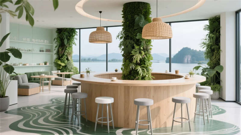 靜音艙與冥想穹頂成為平衡效率的呼吸點(diǎn):蕪湖鐵畫衍生的藝術(shù)裝置、赭山色系漸變墻面與苔蘚微景觀,在科技框架中注入人文溫度。生態(tài)茶歇區(qū)環(huán)形綠植柱呼應(yīng)窗外垂直花園,模糊自然與空間的界限。