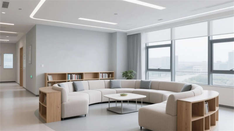 該社區(qū)醫(yī)院設(shè)計(jì)以現(xiàn)代簡約理念為核心,營造出溫馨而高效的醫(yī)療環(huán)境。整體空間強(qiáng)調(diào)人性化布局,接待大廳寬敞明亮,弧形接待臺(tái)與自然光結(jié)合,營造親切的第一印象。候診區(qū)舒適寧靜,沙發(fā)與書架的點(diǎn)綴減輕等待焦慮,診室則注重隱私與專業(yè)感,柔和色調(diào)提升患者信任。藥房設(shè)計(jì)簡潔清晰,便于快速取藥,急診室布局高效,確保緊急響應(yīng)流暢?;?yàn)室和影像科突出功能性,無菌環(huán)境與設(shè)備集成保障精準(zhǔn)診療,康復(fù)區(qū)開放通透,綠植與自然光促進(jìn)身心恢復(fù)。所有區(qū)域統(tǒng)一運(yùn)用中性色調(diào)、木質(zhì)元素和流線型家具,強(qiáng)化視覺連貫性,同時(shí)融入充足采光與綠意,打造舒緩氛圍。設(shè)計(jì)不僅提升醫(yī)療體驗(yàn),還呼應(yīng)了合肥的城市人文特色,為居民提供一處安心、便捷的健康港灣。