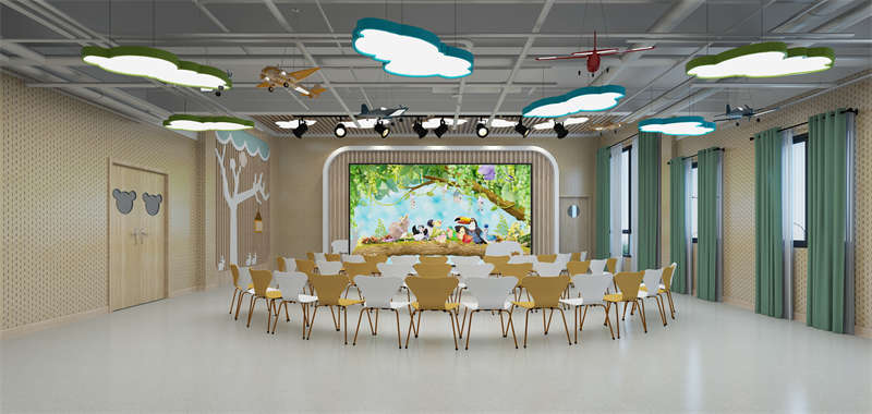 幼兒園的活動(dòng)教室是孩子們進(jìn)行各種室內(nèi)活動(dòng)的場(chǎng)所,是一個(gè)小型的多功能活動(dòng)空間,我們?cè)谠O(shè)計(jì)幼兒園活動(dòng)教室的時(shí)候要秉持著讓孩子們更喜歡待在幼兒園這個(gè)目的。孩子們?cè)诨顒?dòng)室可以進(jìn)行上課,桌面游戲,聽(tīng)故事講故事,唱歌,跳舞,開(kāi)展興趣小組活動(dòng),扮家家,吃午飯吃點(diǎn)心等等。