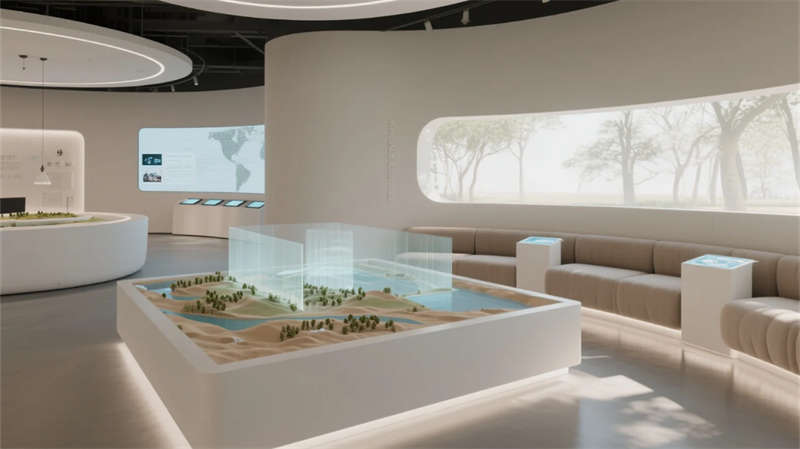 這座展廳以現(xiàn)代簡約風(fēng)格為核心,打造流暢而富有張力的空間體驗(yàn)。入口區(qū)以開放姿態(tài)迎接參觀者,核心展示區(qū)陳列創(chuàng)新展品,互動(dòng)區(qū)通過科技裝置激發(fā)探索樂趣。多媒體區(qū)以視聽盛宴強(qiáng)化敘事,休息區(qū)則提供舒適角落促進(jìn)交流,會(huì)議區(qū)靈活多變適應(yīng)多樣需求。主題區(qū)巧妙融入本土特色,未來區(qū)以先鋒設(shè)計(jì)點(diǎn)燃靈感火花。整體設(shè)計(jì)中,簡潔線條與中性色調(diào)營造寧靜基調(diào),高科技元素如數(shù)字屏和智能照明無縫融入,增強(qiáng)功能性與藝術(shù)感。空間動(dòng)線自然引導(dǎo),從喧囂到沉思,材質(zhì)選用環(huán)保而溫暖,綠植點(diǎn)綴平衡科技冷峻。展廳不僅服務(wù)于展示,更成為啟發(fā)對(duì)話與思考的場所,每一功能區(qū)銜接緊密,共同編織一場關(guān)于未來的故事。在合肥這座活力之城,設(shè)計(jì)以包容姿態(tài)回應(yīng)城市脈動(dòng),為公眾帶來沉浸式文化之旅。
