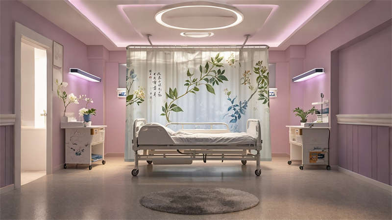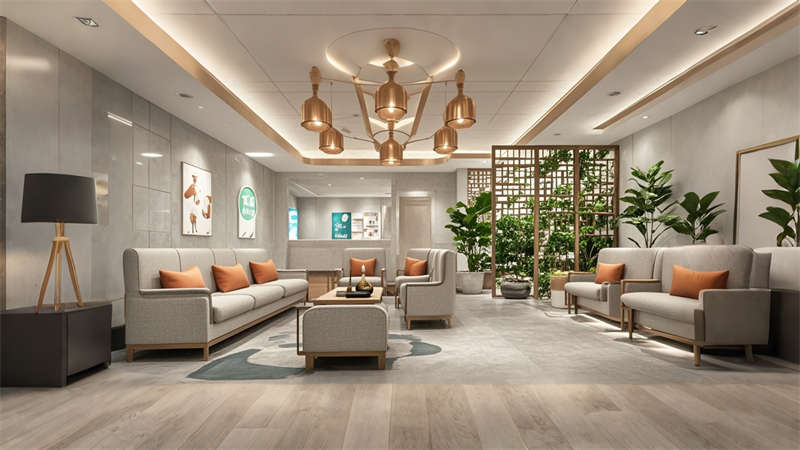 本2000平中醫(yī)院設(shè)計(jì)融合傳統(tǒng)中醫(yī)文化與現(xiàn)代醫(yī)療功能,采用 ' 療愈之境 ' 核心理念??臻g規(guī)劃采用 ' 回' 字形動(dòng)線,門(mén)診、診療、康復(fù)三大功能模塊環(huán)繞中央庭院布局。色彩體系以米白、淺灰為基底,點(diǎn)綴赭石、黛青等傳統(tǒng)中藥色彩,墻面肌理漆模擬紙張質(zhì)感呼應(yīng)古籍文獻(xiàn)。診療區(qū)域采用模塊化隔斷系統(tǒng),兼顧隱私與通風(fēng)需求。智能照明系統(tǒng)可模擬晝夜節(jié)律變化,候診區(qū)座椅集成無(wú)線充電功能。重點(diǎn)區(qū)域設(shè)置 AR 中醫(yī)文化互動(dòng)裝置,住院部走廊每 10 米設(shè)置中藥香薰擴(kuò)散點(diǎn)。材料選擇注重環(huán)保性與耐久性,地面采用防菌 PVC 卷材,墻面使用易清潔的納米涂層。整體設(shè)計(jì)通過(guò)現(xiàn)代設(shè)計(jì)語(yǔ)言詮釋中醫(yī) ' 天人合一 ' 理念,打造兼具專(zhuān)業(yè)醫(yī)療功能與人文關(guān)懷的現(xiàn)代化中醫(yī)院空間。
