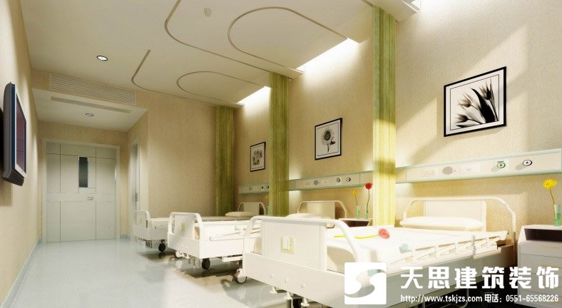 一般醫(yī)院多為一間病房有2~3間病床并配有衛(wèi)生間,病房門入口凈寬應(yīng)為1050mm,以保證單架車出入,門套應(yīng)能抗沖擊。壁柜按每床600mm即可。座便器選用后背懸掛式對(duì)清潔有利。床頭柜可用懸掛式。天花不易有多種造型,多用礦棉板或紙面石膏板。輸液架預(yù)埋龍骨。燈光應(yīng)多路控制。開窗為內(nèi)倒開為宜,以滿足通風(fēng)、安全防護(hù)、方便清潔三種需要。入門口玻璃要選擇透明無色。